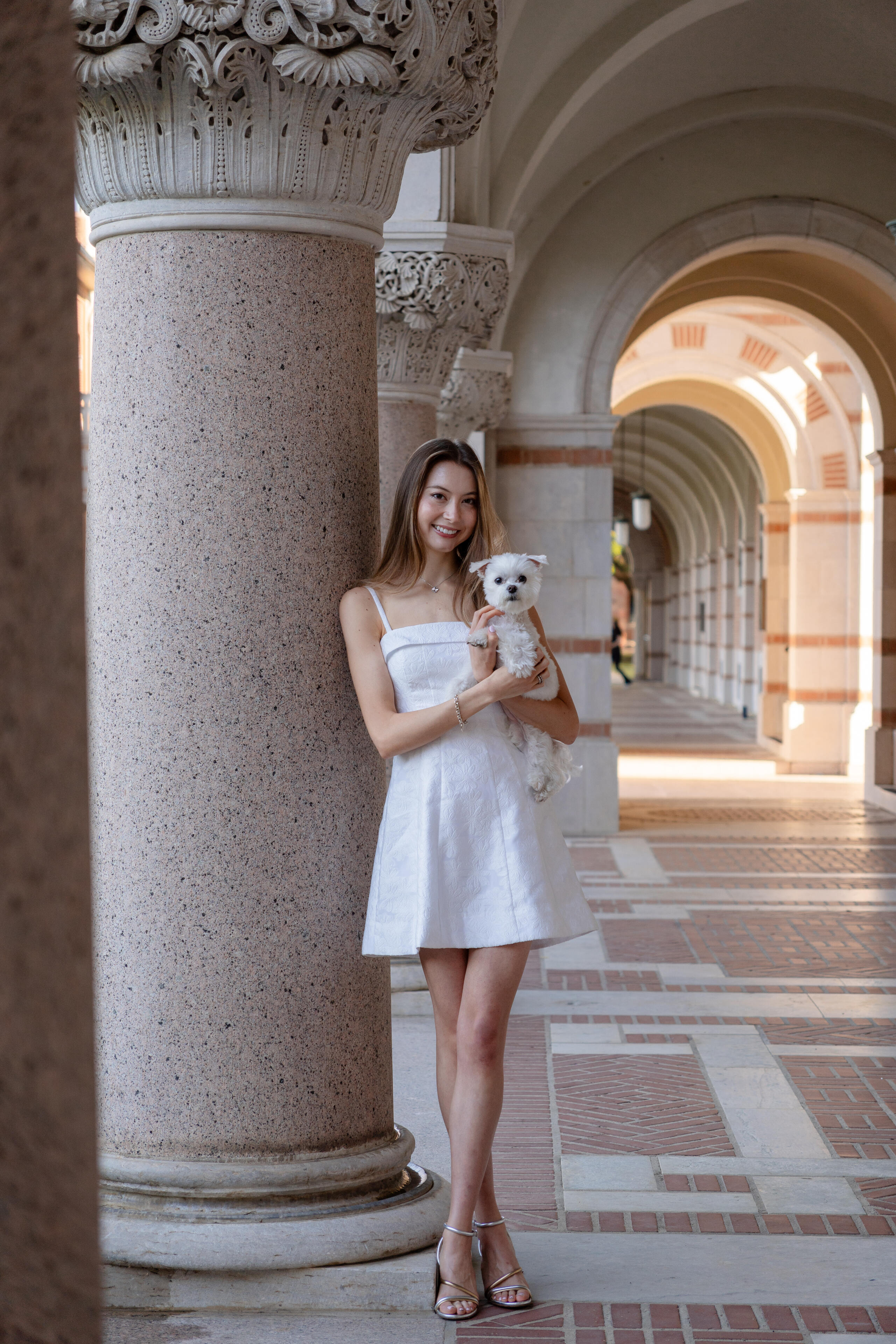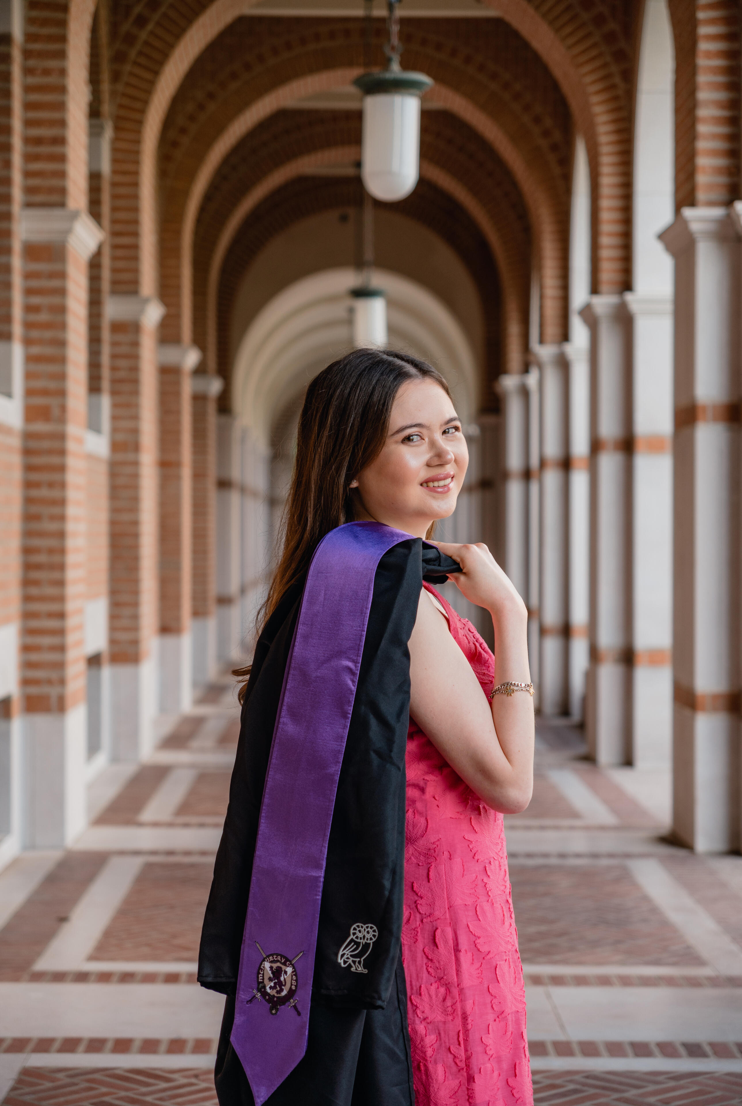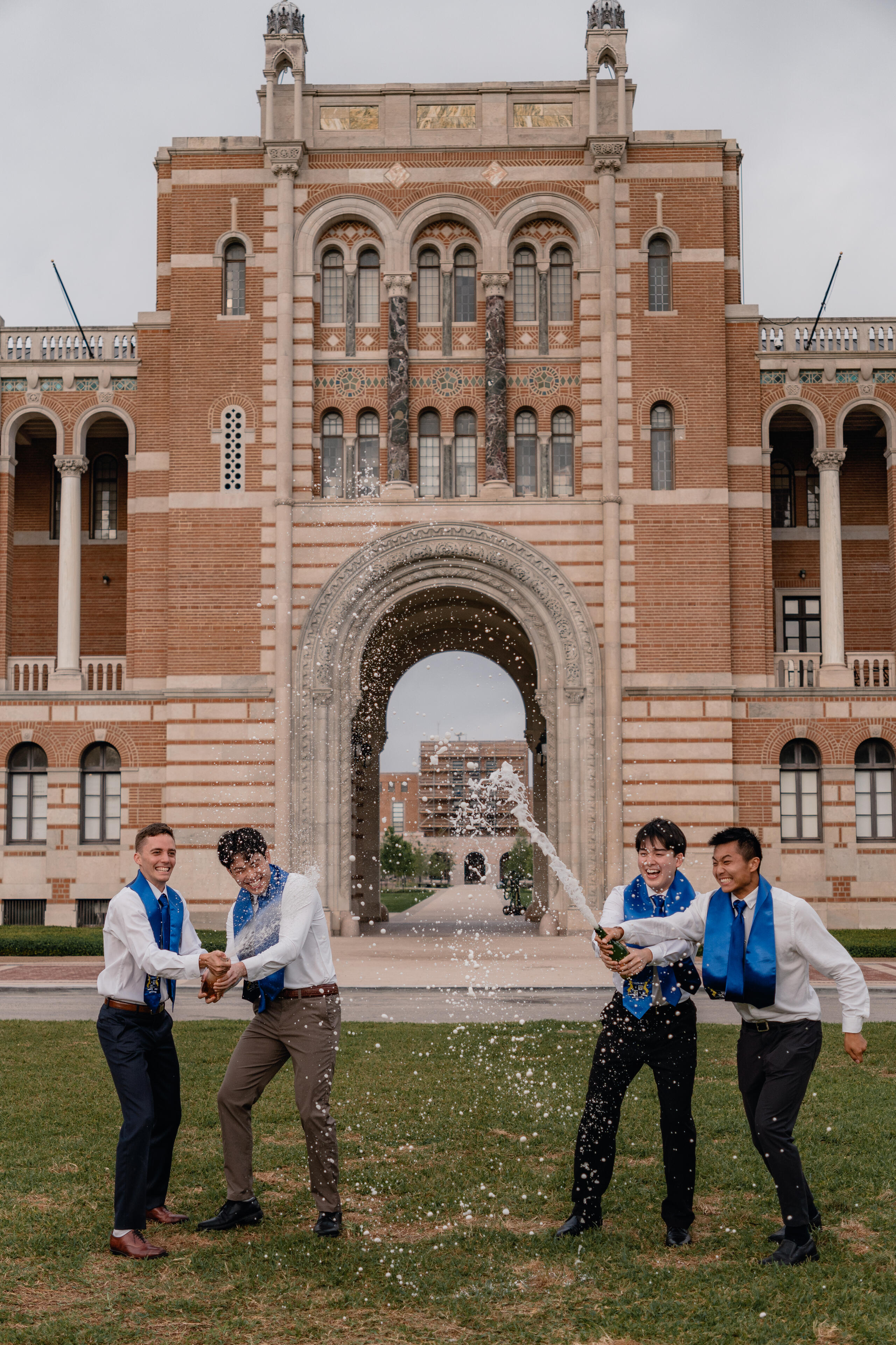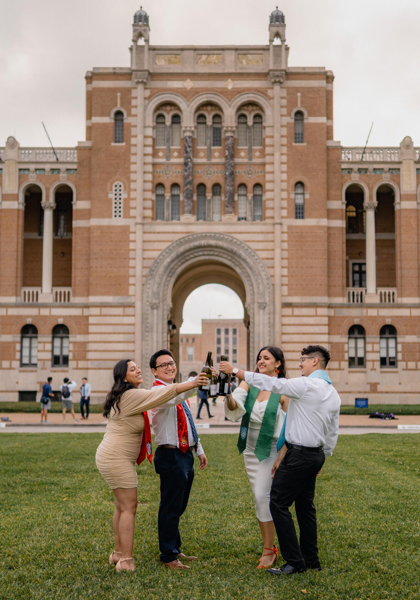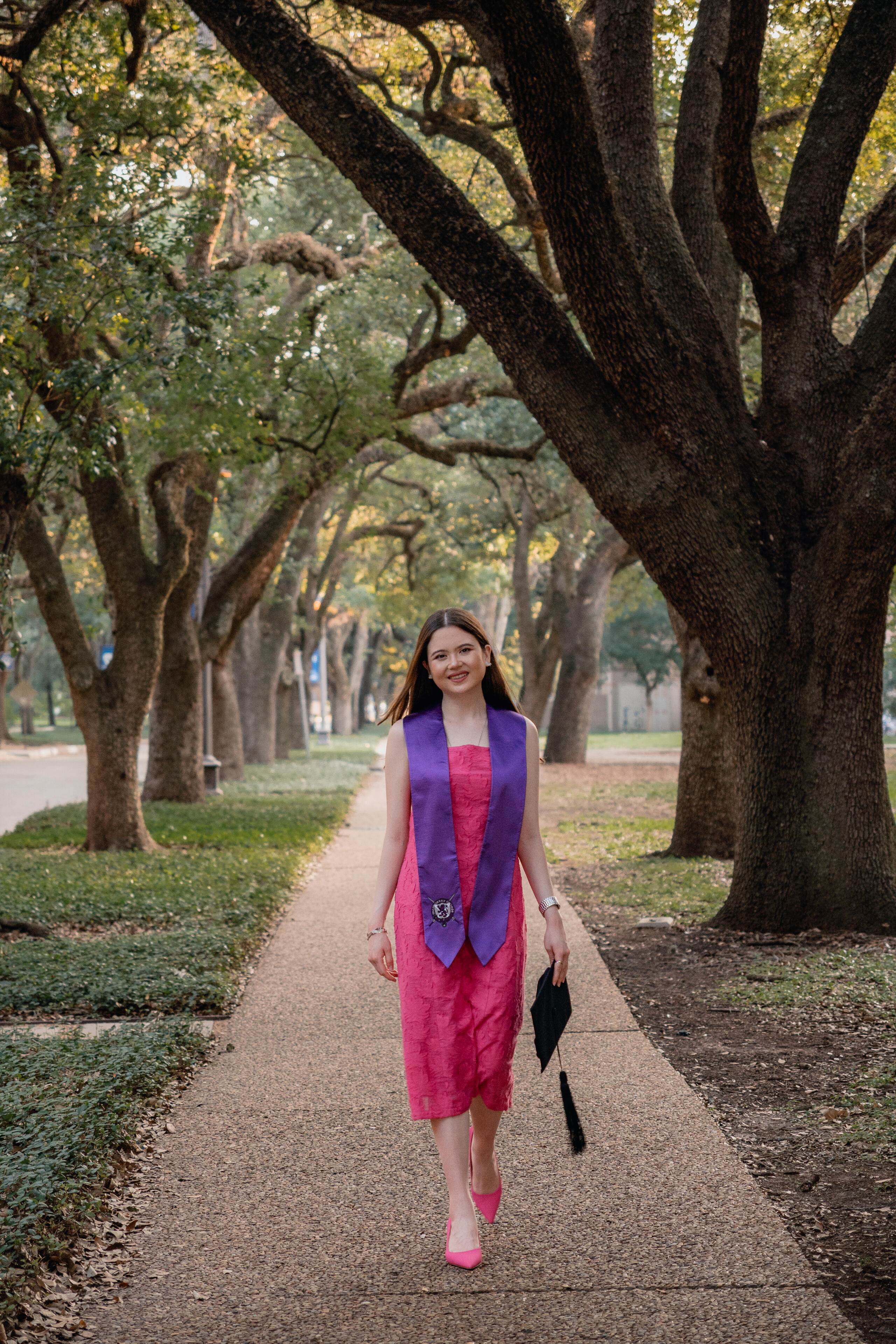 Start time of ~7:45am (shortly after sunrise)Sun is rising on the east, so the founder's court side of the Sallyport is in direct lighting. Light is very soft and perfect for photos in the Lovett Hall arches.Good choice for those who would prefer to minimize background distractions, as campus is quieter during this time, and like cooler, softer, and lower-contrast photos.